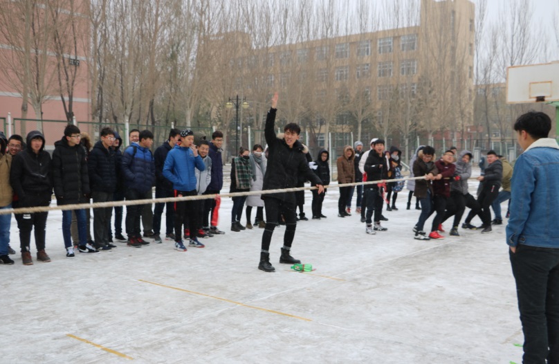 冬季拔河比赛是新葡萄官网开展体育运动的一项重要活动,旨在引导广大大学生“走下网络、走出宿舍、走向操场”,加强课外锻炼,促进身心健康、体魄强健,积极构建美丽、活力、和谐、向上的校园文化氛围。