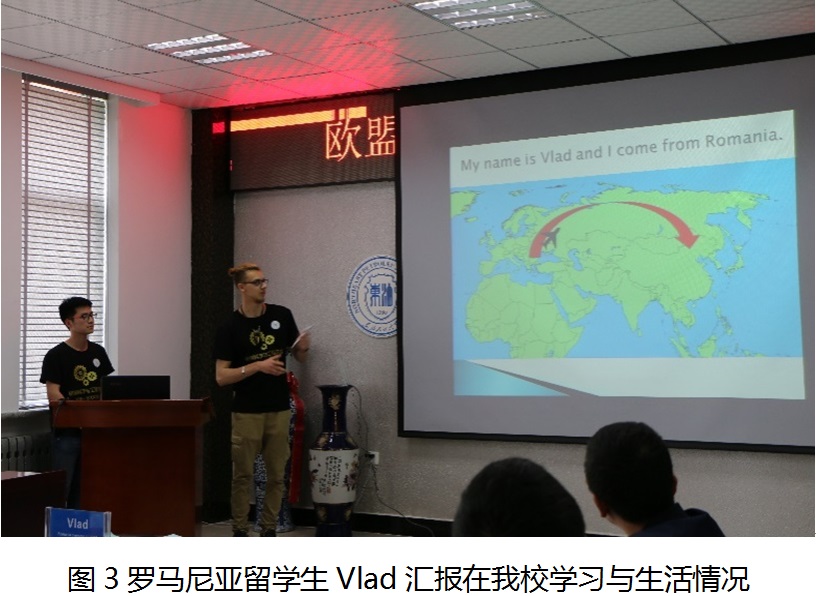 来自罗马尼亚UPG大学的短期交流生Vlad,详细汇报了近3个月在我校学习与生活情况,展示了理论学习与实践学习内容与成果,表达了我校、老师对自己培养与关爱的感激之情,并表示了日后有机会再来我校深造的强烈意愿。