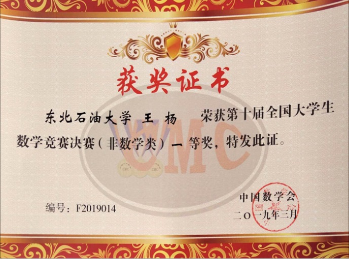 王杨同学一直刻苦努力,在数学方向上保持了浓厚的兴趣,本次竞赛获奖也是我校近年来数学竞赛获得的最好成绩。