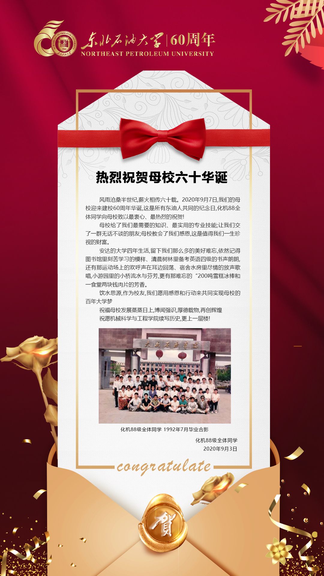 新葡萄官网88级校友热烈祝贺母校六十华诞