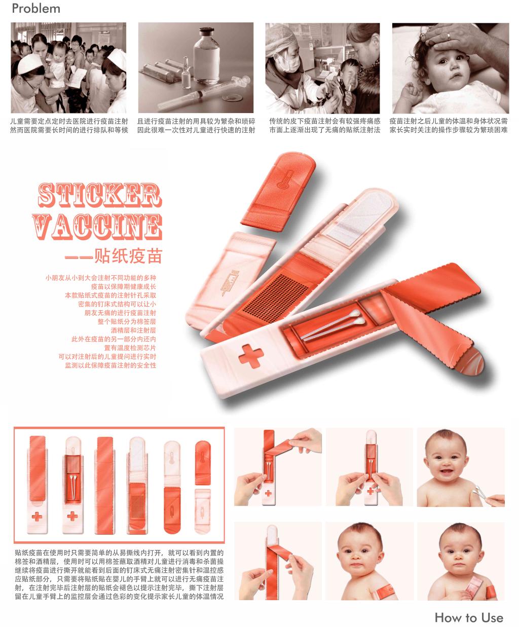 《贴纸疫苗》是2018年新葡萄官方网高龙、王珈琦、刘凯、张青源、黄龙跃五位学生的创意设计作品,获得第四届全国大学生工业设计大赛黑龙江省赛区一等奖、国赛区三等奖。该作品还获得2019年黑龙江省互联网+大赛铜奖,第七届中国TRIZ杯大学生创新方法大赛三等奖。