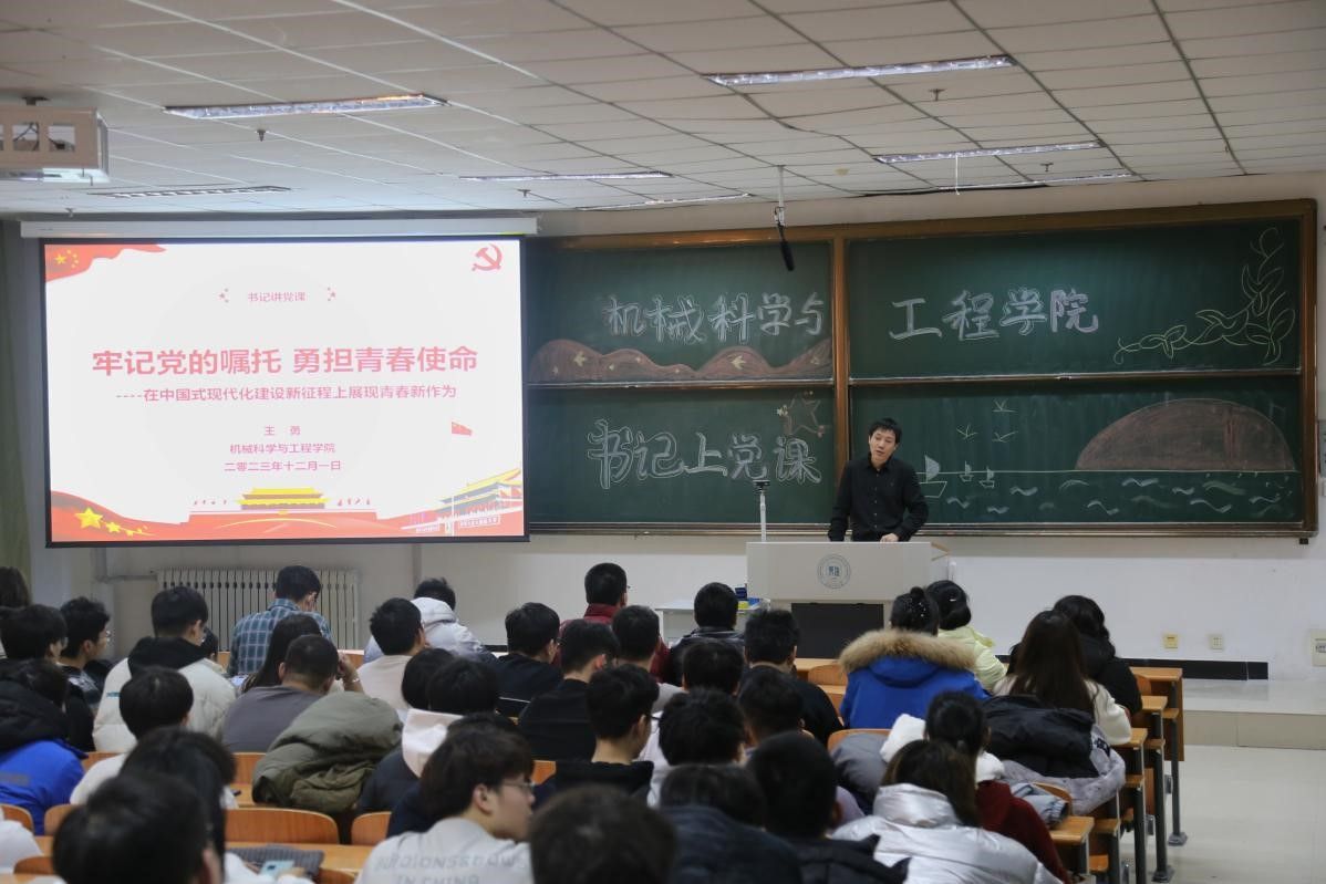 2023年12月1日,学院党委书记王勇以“牢记党的嘱托 勇担青春使命--在中国式现代化建设新征程上展现青春新作为”为题,为新葡萄官网200多名本科生和研究生党员上了一堂生动的专题党课。