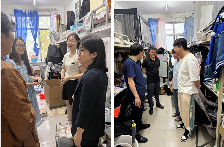 为深入了解毕业生离校前状态,学院领导班子在毕业班辅导员刘佳瑶和黄俊达的陪同下,又深入学生宿舍开展走访慰问,与即将离校的毕业生们进行了亲切的交流,了解他们的生活状况、毕业去向和未来规划,询问同学们当前急难愁盼的问题,并给予了积极回复与指导,为即将踏上人生新征途的毕业生们送去真切的关怀和温暖的祝福。希望毕业生们能够充分利用大学四年的所学所得,将其应用于实际工作中,并勉励大家毕业后继续发扬艰苦创业、严谨治学的校训精神,在新的领域不断探索前进,为社会做出自己的贡献。同学们纷纷表达了对母校的感激和不舍之情,表示会牢记老师们的谆谆教诲,文明离校、诚信离校、安全离校,踏入社会后一定不辜负学校期望,以优异的成绩回报社会,为母校添彩。