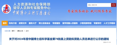 新葡萄官网教师获2024年国家级、省级博士后科研资助